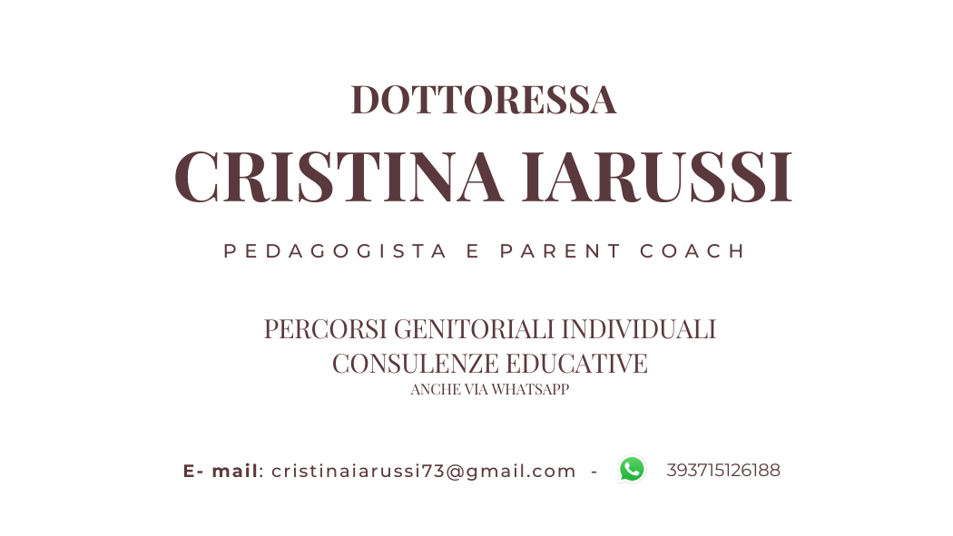 Sono una Pedagogista e Parent Coach, oltre che Mamma e Insegnante di Scuola dell'Infanzia.