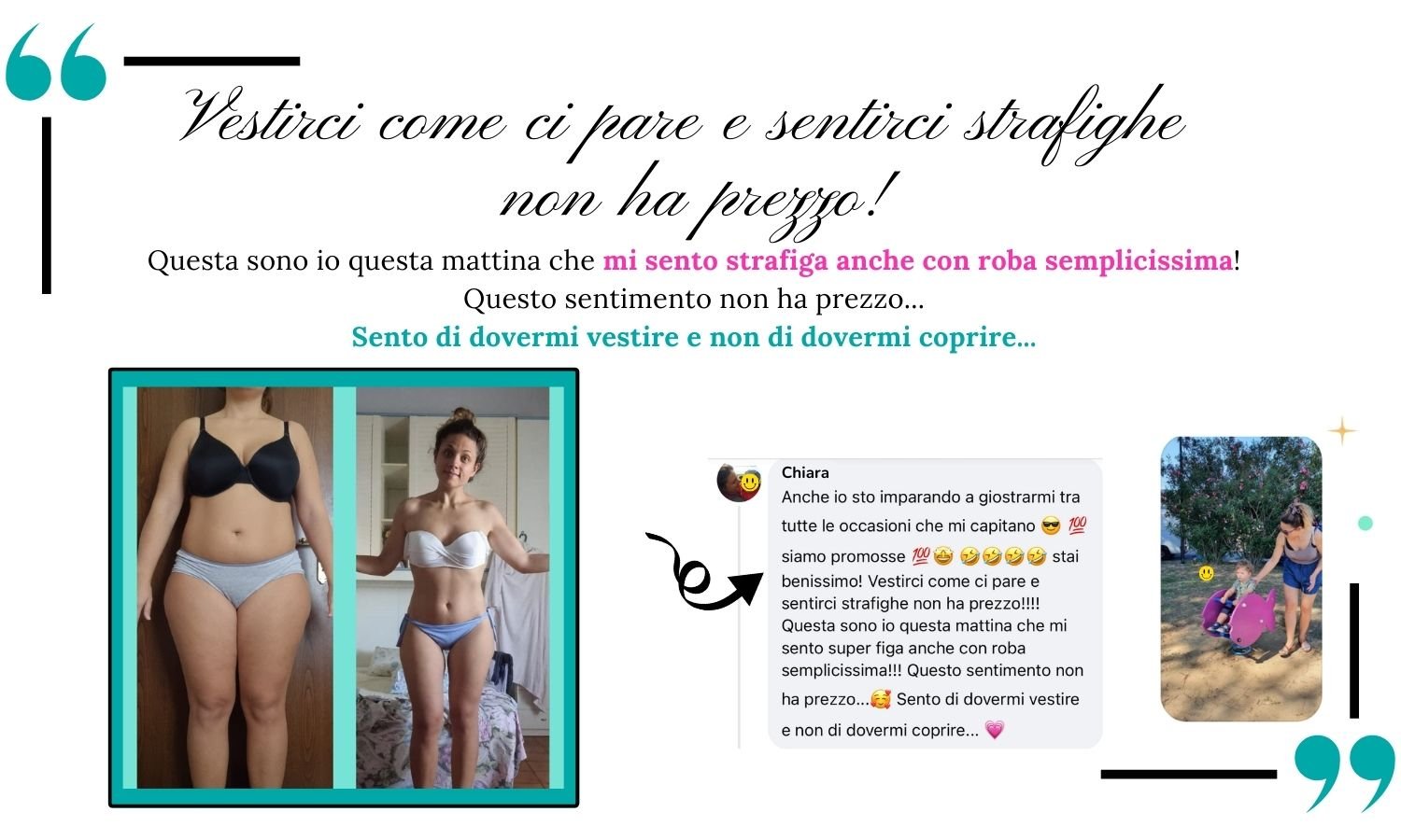 Una storia fatta di libertà, serenità, abiti scelti per sentirti bella, fotografie da riguardare con orgoglio… e nessuna paura del cibo.