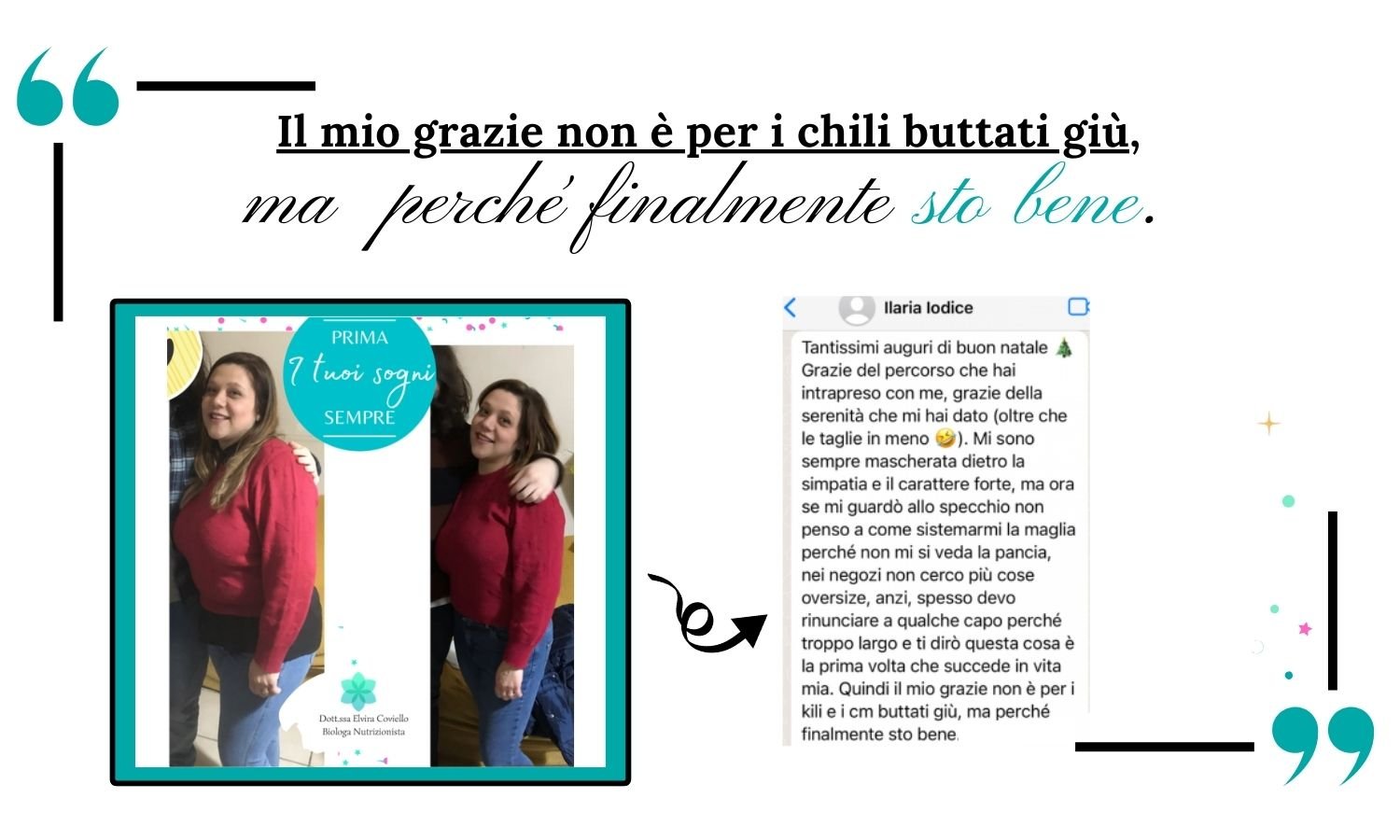 Ciao! Sono Elvira Coviello, Biologa Nutrizionista e autrice del libro “Ti ordino di dimagrire!”